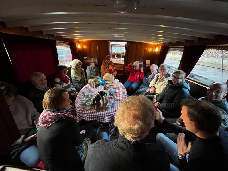 Woensdag 14 mei jl. zijn we weer uitgevaren met de Bolivar, het prachtige rustieke schip uit Amersfoort. De deelnemers genoten zichtbaar van de verhalen. Tussen de verhalen door konden ze naar het dek gaan om van het zonnige weer te genieten en het landschap dat langzaam voorbij gleed.
